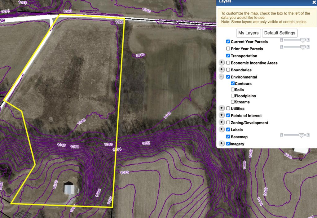 While you’re there, check out the aerial map for possible utility info, contours, and soils.